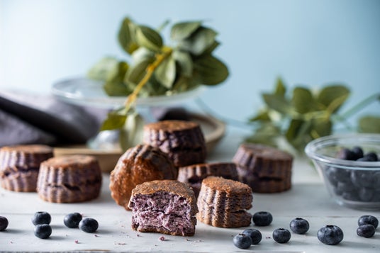 内容:完熟ブルーベリーを自家製のピューレにして、たっぷりと生地に練り込み焼き上げました。果実がぎゅっと詰まったブルーベリーの鮮やかな色彩に、ブルーベリーの濃厚な味わいと優しい甘さが広がります。