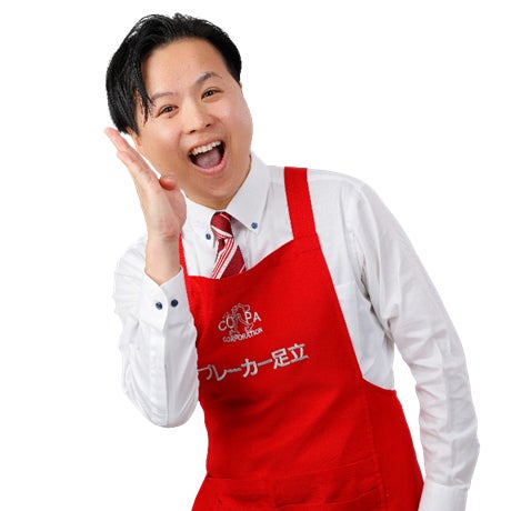 ● ブレーカー足立常にテンションMAX。家電・日用品を中心に、親しみやすいスタイルで顧客を惹きつける販売士。