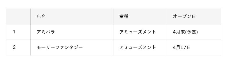 <イオンモール津山インター 専門店リニューアル 店舗リスト>
