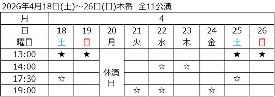 期間:2026年4月18日(土)~4月26日(日) 計11公演 ※開場時間は開演の45分前