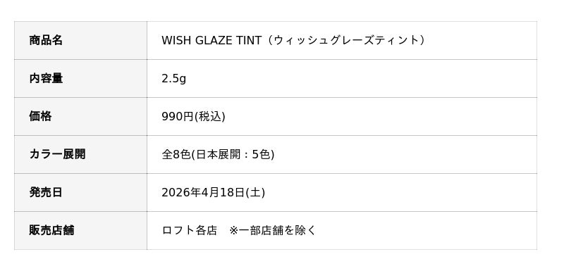 ■ 新商品:WISH GLAZE TINT(ウィッシュグレーズティント)