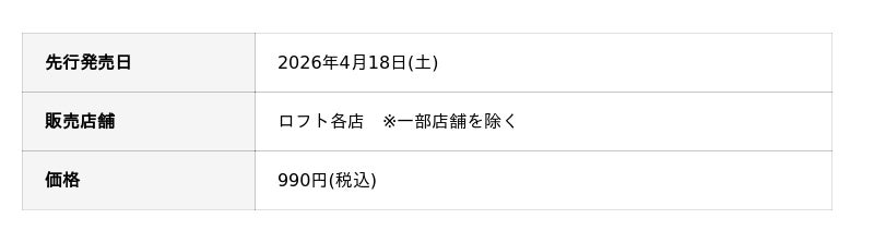 2026年4月18日(土)より、ロフト各店にて先行発売 ※一部店舗を除く