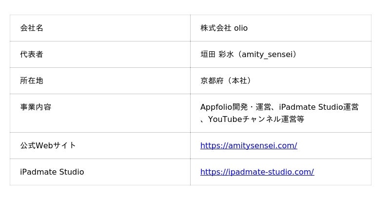 株式会社olio(代表:垣田 彩水、所在地:京都府)は、iPadのチュートリアルアプリ「Appfolio(アップフォリオ)」の本格展開を、2026年4月18日より開始します。