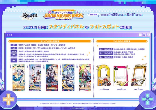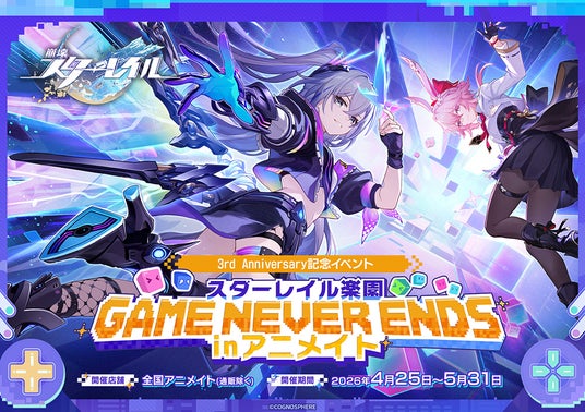 株式会社アニメイトは、『崩壊:スターレイル』の新商品を2026年4月25日~5月31日の期間限定で販売いたします。また、同期間に【『崩壊:スターレイル』3rd Anniversary記念イベント スターレイル楽園「GAME NEVER ENDS」in アニメイト】を開催いたします。