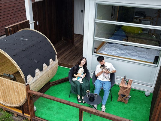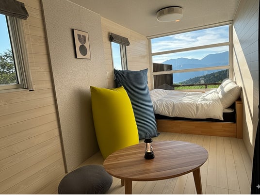 大自然に囲まれたキャンプ場内にふたりだけの特別なグランピング空間が誕生する。 室内にはプロジェクターを完備。お好きな映像を投影しながら、非日常の時間をお楽しみください。 小型犬同伴OKなので、愛犬と一緒のご滞在も可能です。ここでしか味わえない滞在をぜひご体験ください。