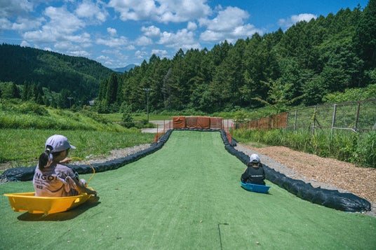 キャンプ場内には、清流での水遊びが楽しめる小川や、ブランコ、ターザンロープ、芝滑りなど、お子様が安全に遊べる多彩なアスレチック施設を完備しています。
