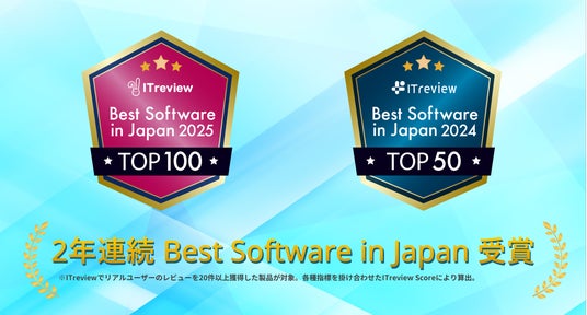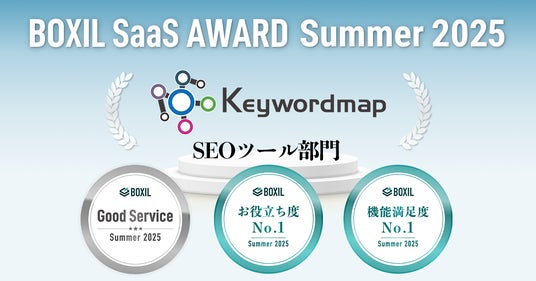 Keywordmapは法人向けのIT製品・クラウドサービスのレビューと資料比較ができる国内最大級のプラットフォーム『ITreview』において、毎年発表されるBest Software in Japanを2年連続受賞しております(2025年度:58位、2024年度:41位)。