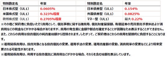 運用関係費用とは、利用する投資信託にかかわる費用で、投資信託ごとに定められており、特別勘定の投資対象となる投資信託の純資産総額から毎日控除します。