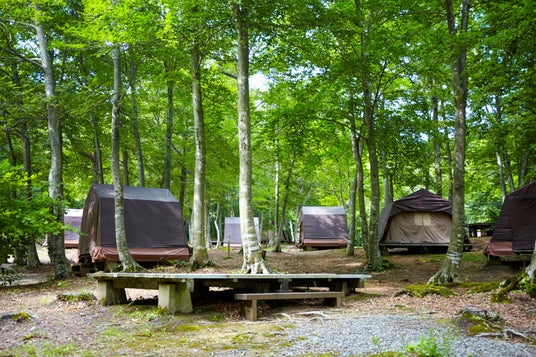 手ぶらで気軽に【休暇村オリジナルロッジ型テント】 テントの設営も撤収も不要なお手軽にキャンプを楽しみたい方にオススメ。