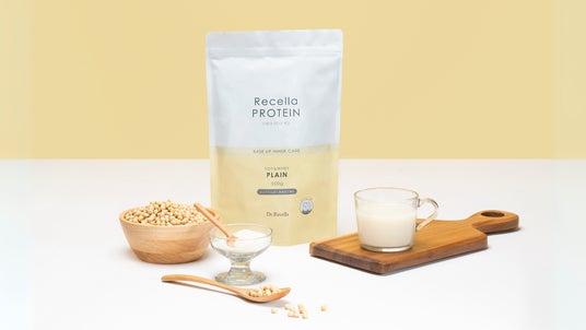 美容にうれしいイソフラボンが摂取できるソイプロテインに加え、吸収性に優れたホエイプロテインをW配合した「リセラ プロテイン」。