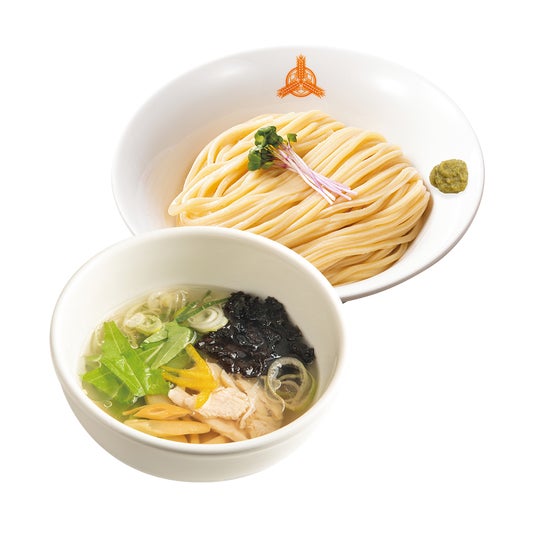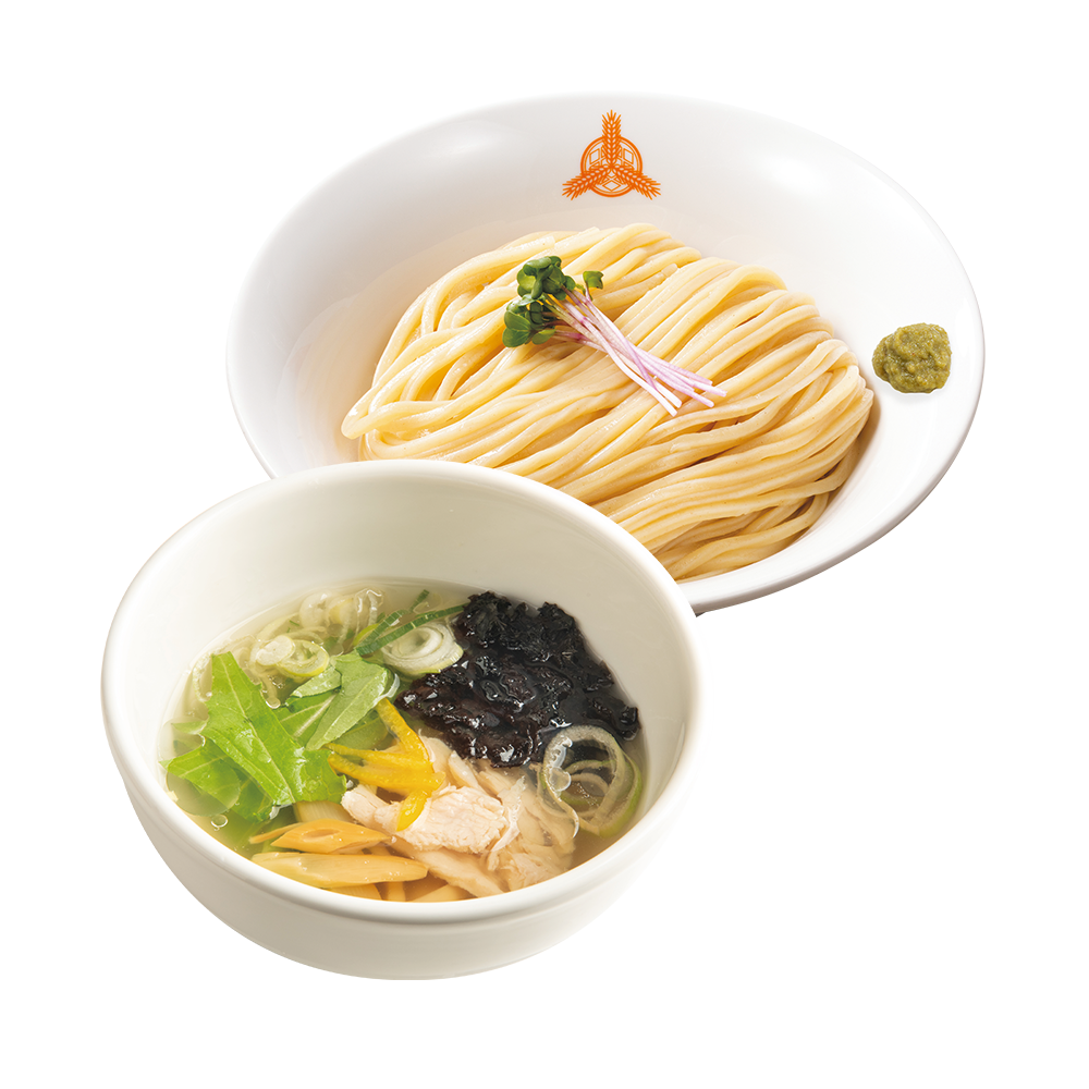 鯛の旨味を丁寧に引き出した、冷たく透き通る淡麗塩スープは、口当たりが軽やかで、暑い日でもつるりとお召し上がりいただけます。スープには、水菜・ほぐし鶏・岩海苔・ねぎ・柚子を合わせ、それぞれの食感と風味が重なり合うことで、最後まで飽きのこない味わいに仕上げました。