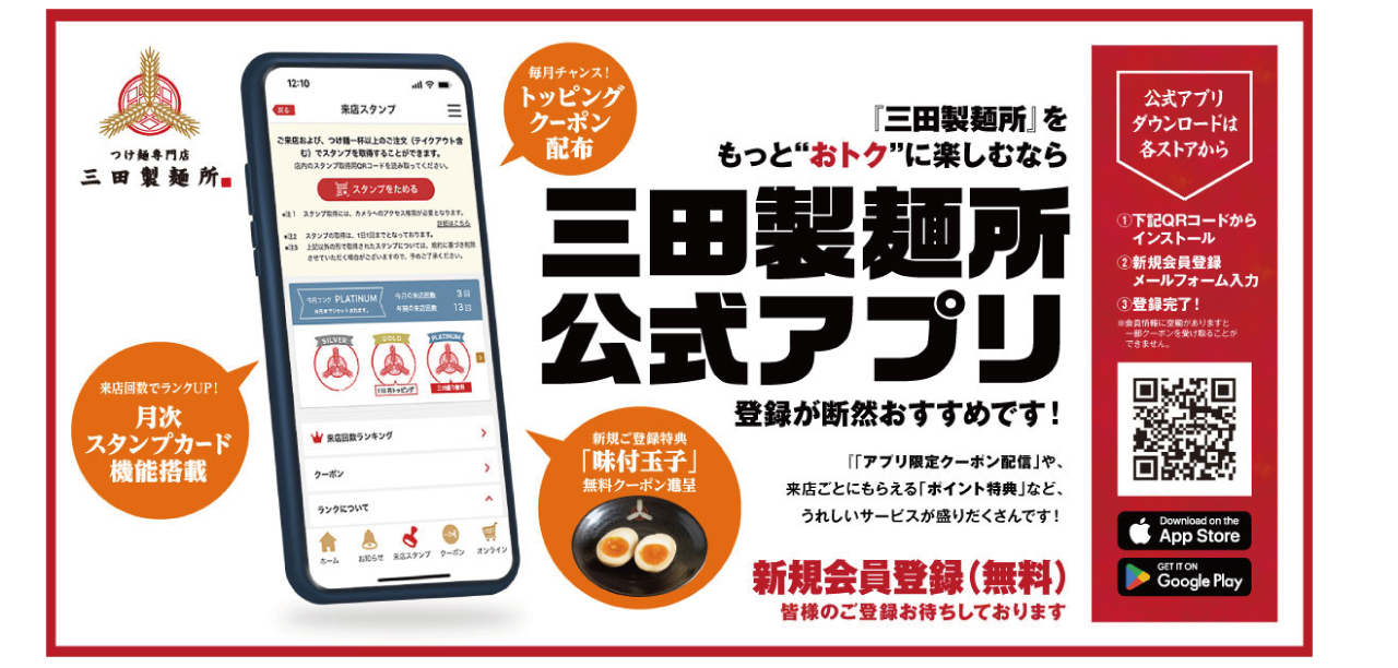 三田製麺所をもっとお得に楽しむなら、アプリ登録が断然おすすめです。