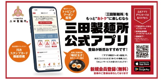 アプリをダウンロードして、お得に三田製麺所を楽しもう♪
