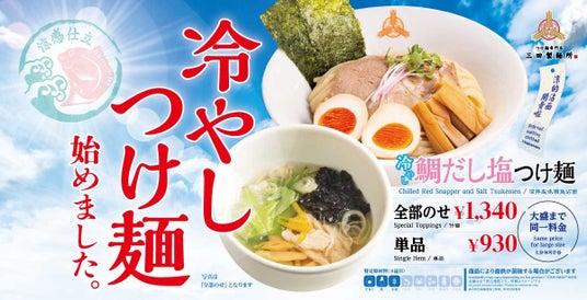 株式会社エムピーキッチンホールディングス(本社:東京都渋谷区、代表取締役CEO:鹿中 一志)が運営する『つけ麺専門店 三田製麺所』は、2026年4月28日(火)より、夏の定番商品『冷やし鯛だし塩つけ麺』を期間限定で販売いたします。