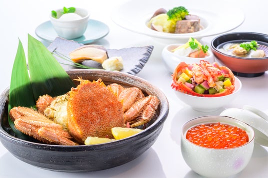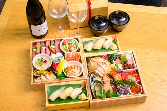 オーセントホテル小樽夕食・北海道三大カニの和魂洋才2段重~余市・平川さんのフルボトルワイン付き~(イメージ) ※デラックス・スイート共通