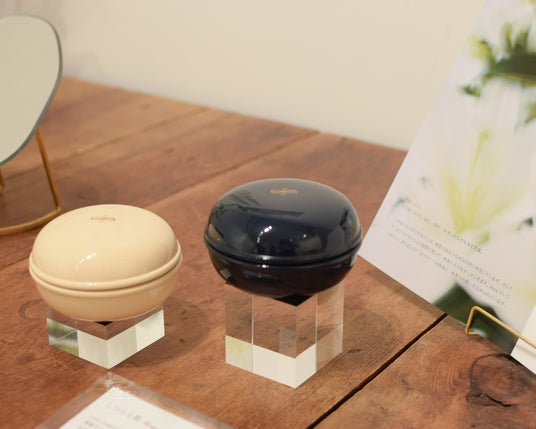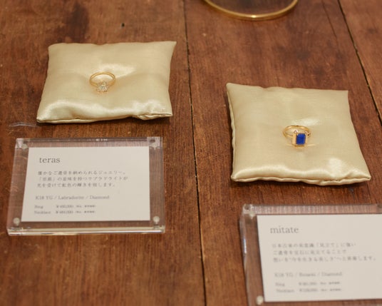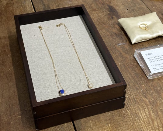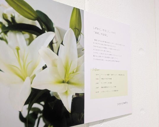 その先では「今」のyoyo jewelryを代表する手元供養アイテムをご紹介。「遺骨ジュエリー」や、漆塗り小箱「しつらえ箱」など、オンラインストアのみで展開しているアイテムを、実際に手に取ってご覧いただける機会となりました。