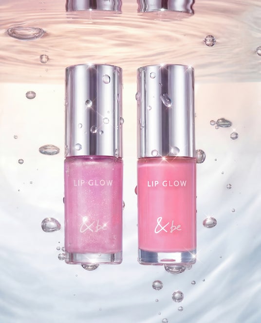 また、「&be リップグロウ」は、贅沢なツヤのヴェールでぷっくり※1とした唇を叶えるリップグロス。厚みのあるオイル膜が唇を包み込む「ラッピング処方」を採用し、うるおいによる光沢感とボリュームアップ効果で、縦じわの目立たない、なめらかで弾むような唇を演出します。カラーは、ナチュラルな血色感を与える可憐なピーチピンク「01」と、程よい血色感と透明感でセンシュアルな表情を引き出すシアーパープル「02」の2色展開。繊細な多色ラメが光を受けてきらめき、唇に華やかさをプラスします。