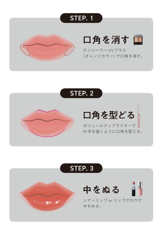 1.「&be テンシーラー UVプラス」のオレンジカラーで口角のくすみをカバーします。