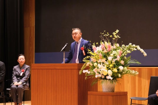 【中華人民共和国駐日本国大使館教育処 郭軍 参事官(祝辞より)】「世界各地から集まった皆さんの入学を歓迎します。国際情勢が不安定な今こそ、相互理解を目指す姿勢が重要です。AI時代において、失敗を恐れず人と向き合い言葉を交わす経験は確かな価値を持ちます。今後も留学や交流機会を通じて皆さんを支援し、本校の発展と皆さんの成長を祈念いたします。」