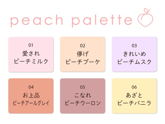 ■ 第一弾のテーマは「Peach Palette(ピーチパレット)」第一弾は、SNSでも根強い人気を誇り、“モテ”や“ジューシー”のアイコン的存在である「ピーチ」をテーマに、個性豊かな6つの香りをラインナップしました。