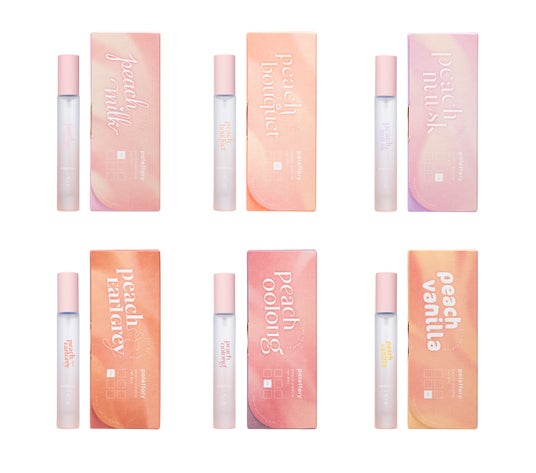 ドン・キホーテ限定のフレグランス「Palettory」がデビュー(ハート) “愛されピーチミルク” から “あざとピーチバニラ” まで、桃の香りだけで6種類!