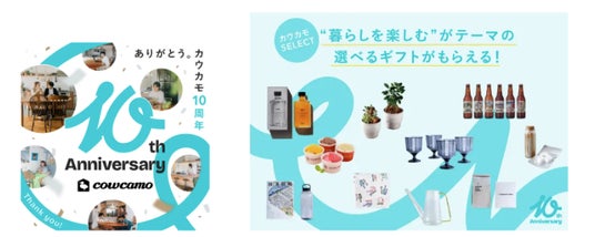 期間中、上記イベントに参加された方へ、カウカモ10周年を記念して特別にセレクトした”住まいに関わるギフト”全10種類の中から、お好きなギフトを1つプレゼント!家さがしの第一歩を踏み出すきっかけに、ちょっとうれしい特典を。ぜひこの機会にご参加ください。