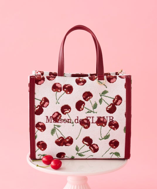 チェリー柄ゴブラン2Wayスクエアトートバッグ