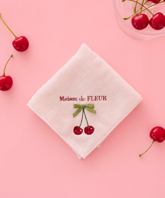 チェリー刺繍タオルハンカチ