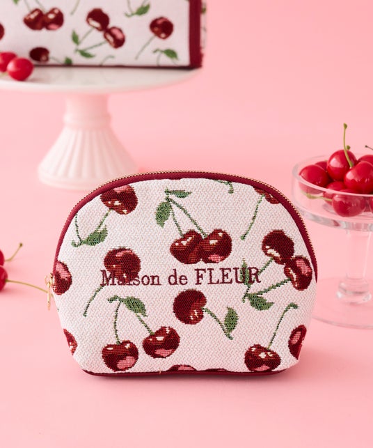 チェリー柄ゴブランラウンドポーチ