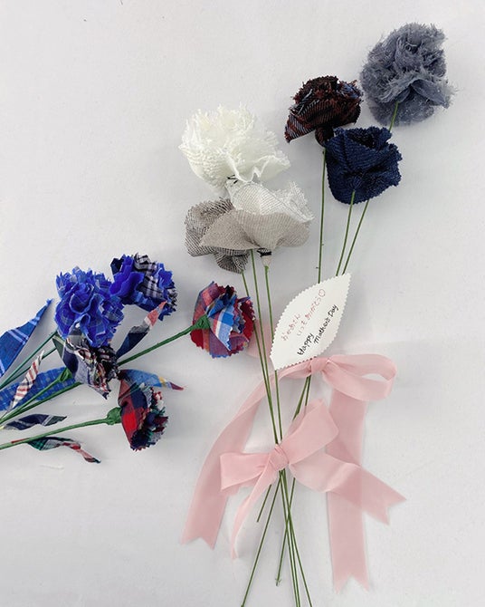 会社内の余った端切れなどを利用した、ワークショップです。色や柄を選んで、自分の好きなお花を作って、メッセージを添えて母の日のプレゼントにしよう。