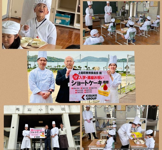 キスケグループである株式会社 呑吐樋(本社:愛媛県今治市、代表:山路松平)が運営する「シャトレーゼ今治駅前店」は、2026年4月22日、愛媛県越智郡上島町の離島にある小学校・中学校7校の全校生徒へ、入学・進学のお祝いとしてカットケーキ約350個を寄贈しました。