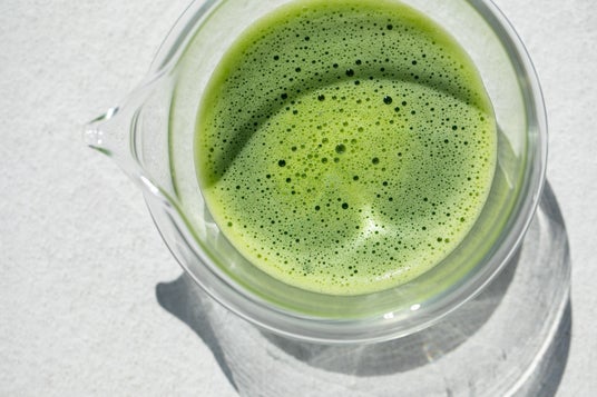 抹茶が混ざり合い、泡が立ち上がる過程。