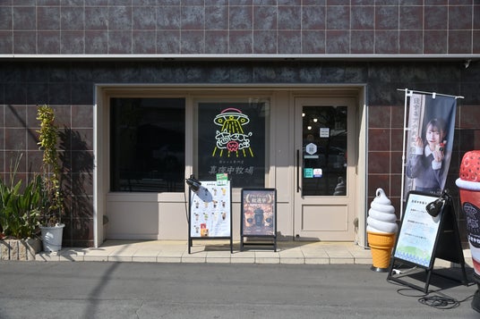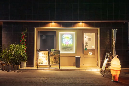 UFOとウシのネオンサインが目印です