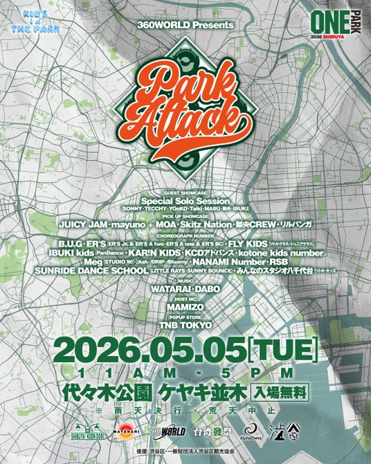名称:SHIBUYA ONE PARK 2026 - PARK ATTACK & 台湾發祭 -日程:2026年5月2日(土)~ 5日(火・祝)