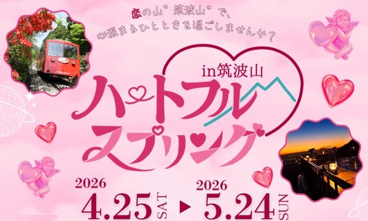 京成グループの筑波観光鉄道(本社:茨城県つくば市、社長:枝村 誠)が運営する筑波山ケーブルカー&ロープウェイでは、ゴールデンウィーク期間中、恋とぬくもりをテーマとした特別企画「ハートフル・スプリングin筑波山」を開催いたします。