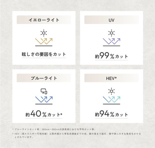 眼のトラブルとなる“光を徹底攻略”したAnti Beam Tec Lens(アンチビームテックレンズ)を採用。