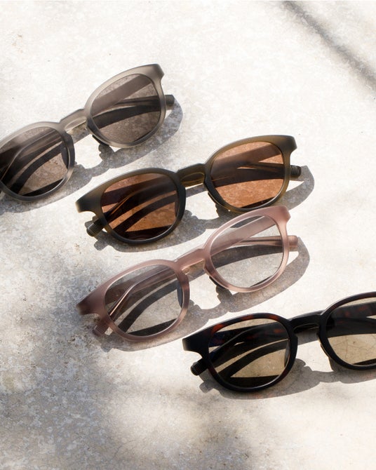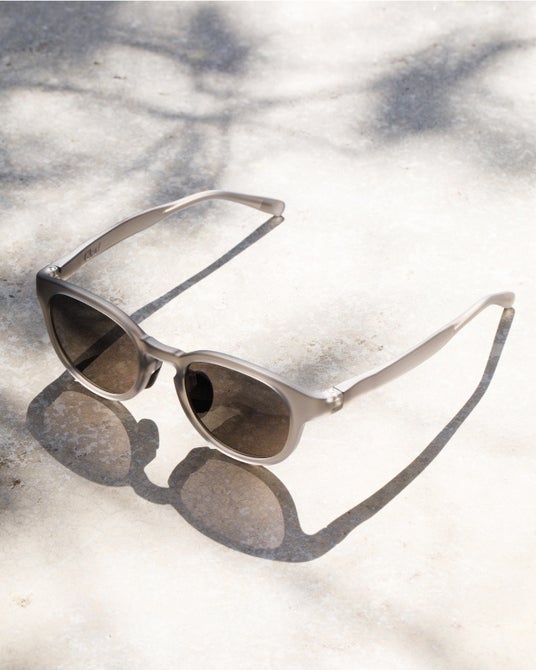 マットカラーのフレームに、ダークカラーレンズを採用。軽やかでスポーティーなデザインとカジュアルで落ち着いた質感のマットカラーにより、程よい存在感に。