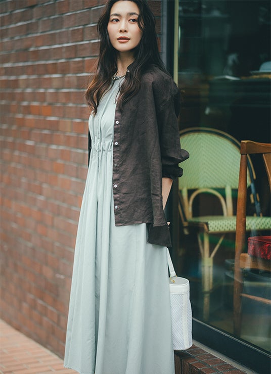 1.バックシャンワンピース過去アーカイブの中でも圧倒的な人気を誇った名品。今回の復刻に合わせて、限定カラー「グリーン」が新登場。肌を明るく見せる、洗練された発色です。