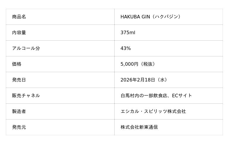 EC販売ページ https://shop.ethicalspirits.jp/products/hakuba_gin