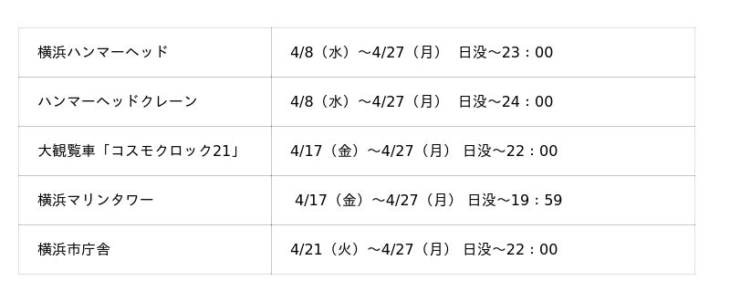 ※1 よこはまコスモワールド・YOKOHAMA AIR CABINは4月17日(金)から設置