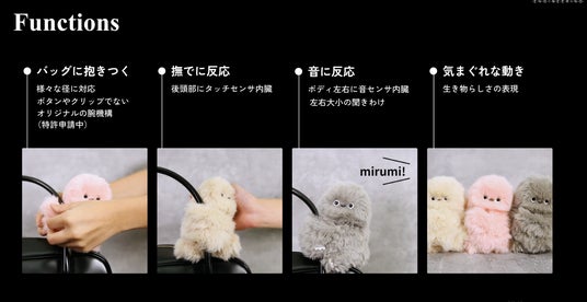 既存の機構では表現できない強度とかわいらしさを両立した、mirumi独自の抱きつき機構を実現しました。
