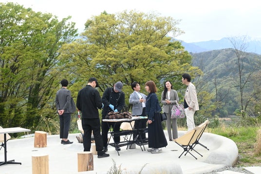 山脈を望む開放的な空間で、地域のパートナーと共に行われた乾杯