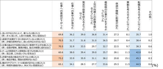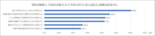 調査対象者:全国の20~40代の正社員・派遣社員の男女のうち、現在の職場で『気持ちが傷ついた』『大切にされていないと感じた』具体的な経験があると回答した人(複数項目のいずれかに該当)