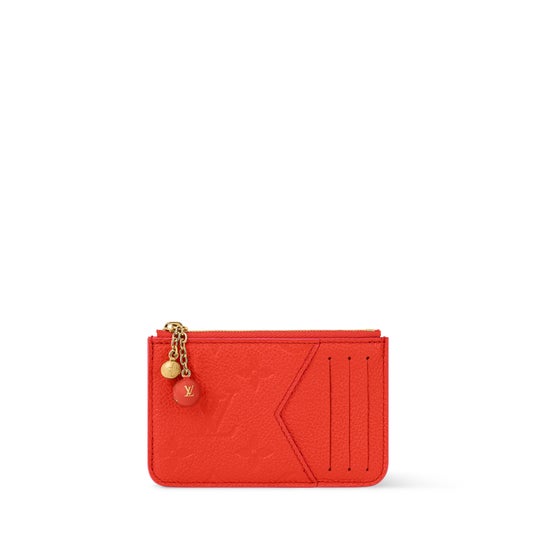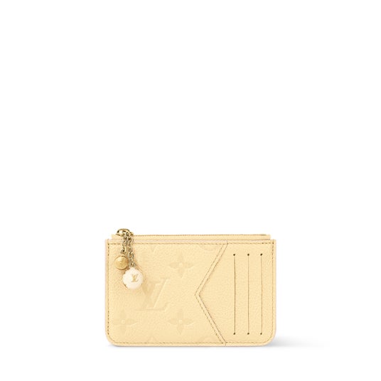 精緻なディテールが魅力的な、今シーズンならではのフェミニンなタッチで再解釈されたカードケース「ポルト カルト・ロミー」。内装には繊細なモノグラム・フイユアージュ プリントを施し、2つの球体チャームを配した装飾的なファスナー引き手がアクセントをプラス。コンパクトでありながらも機能的なデザインで、3つのカードスロットとファスナー付きポケットを備えています。