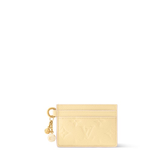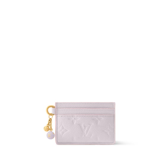 ファッションアイテムにフェミニンなアクセントを添えるカードケース「ポルト カルト・LV チャーム」。両サイドにそれぞれ2つずつのカードスロットを備えた機能的なデザインで、中央のコンパートメントは洗練されたモノグラム・フイユアージュ プリントで彩られています。