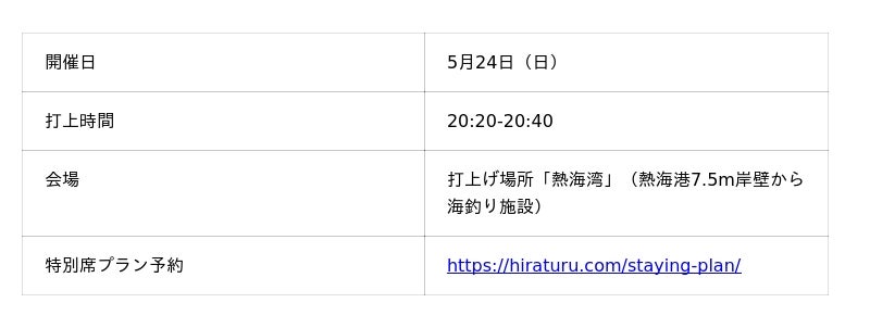 【春空に咲く大輪の華】春の行楽シーズンは熱海温泉へ!5月の熱海海上花火大会は24日(日)。特等席確約の送迎付きプランの販売中。空席少なくなっているので、ご予約はお早めに!