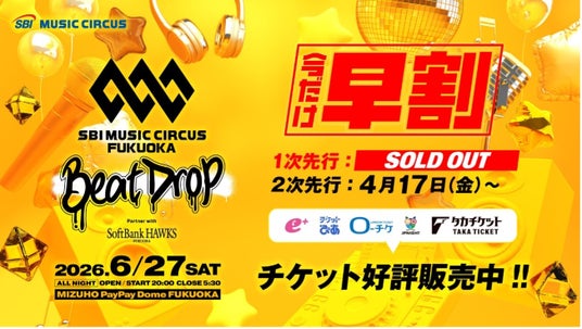 【福岡】オールナイト音楽フェス「SBI MUSIC CIRCUS FUKUOKA -Beat Drop- partner with SoftBank HAWKS」出演者フルラインナップ発表のお知らせ