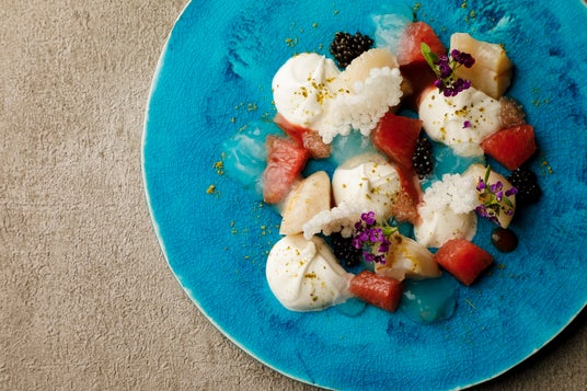 「TENJIN」オールデイダイニングでは、「サマーアフタヌーンティー -青嶺(あおね)-」が登場します。白桃のムース「白桃 グロゼイユ」や、サブレとムースで夏のアイコンに見立てた「麦藁ぼうし~パッションマンゴー~」、フレッシュな「パイナップル タルト」や、爽やかな甘酸っぱさが心地良く広がる「ババ ピーチメルバ」など、やさしい甘さの白桃とジューシーなトロピカルフルーツの見た目や香り、味わいなどの多彩な表現をご堪能いただけます。また、ランチやディナーでは、ジロール茸やアーティチョークの芳醇な香りを楽しむメイン「仔羊 アーティチョーク チョリソー」や、ベルガモットシロップでマリネした国産桃1/2個を贅沢に使ったデザート「白桃 赤紫蘇 ベルガモット」など、夏の食材が主役のこの時期ならではの旬なメニューをご用意しています。