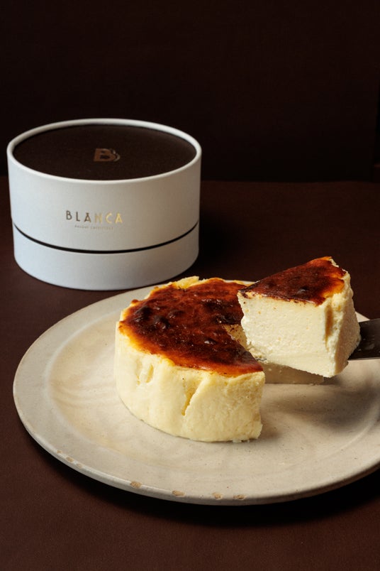 ほろ苦さと濃厚な甘みがとろけあう、BLANCAの原点。ブランドの象徴であるバスクチーズケーキは、表面をあえて強く焼き上げることで生まれる「焦げ」の香ばしさを楽しむ一品です。口に入れた瞬間に広がるカラメルのようなほろ苦さと、厳選されたチーズの濃厚な甘みが絶妙なコントラストを描き、とろけるような食感とともに深い余韻を残します。