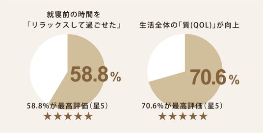 太陽光を再現した優しい光が、心身をリラッ クスモードへと導き、質の高い睡眠をサポートします。70.6%が最高評価/先行モニターのリアルな声